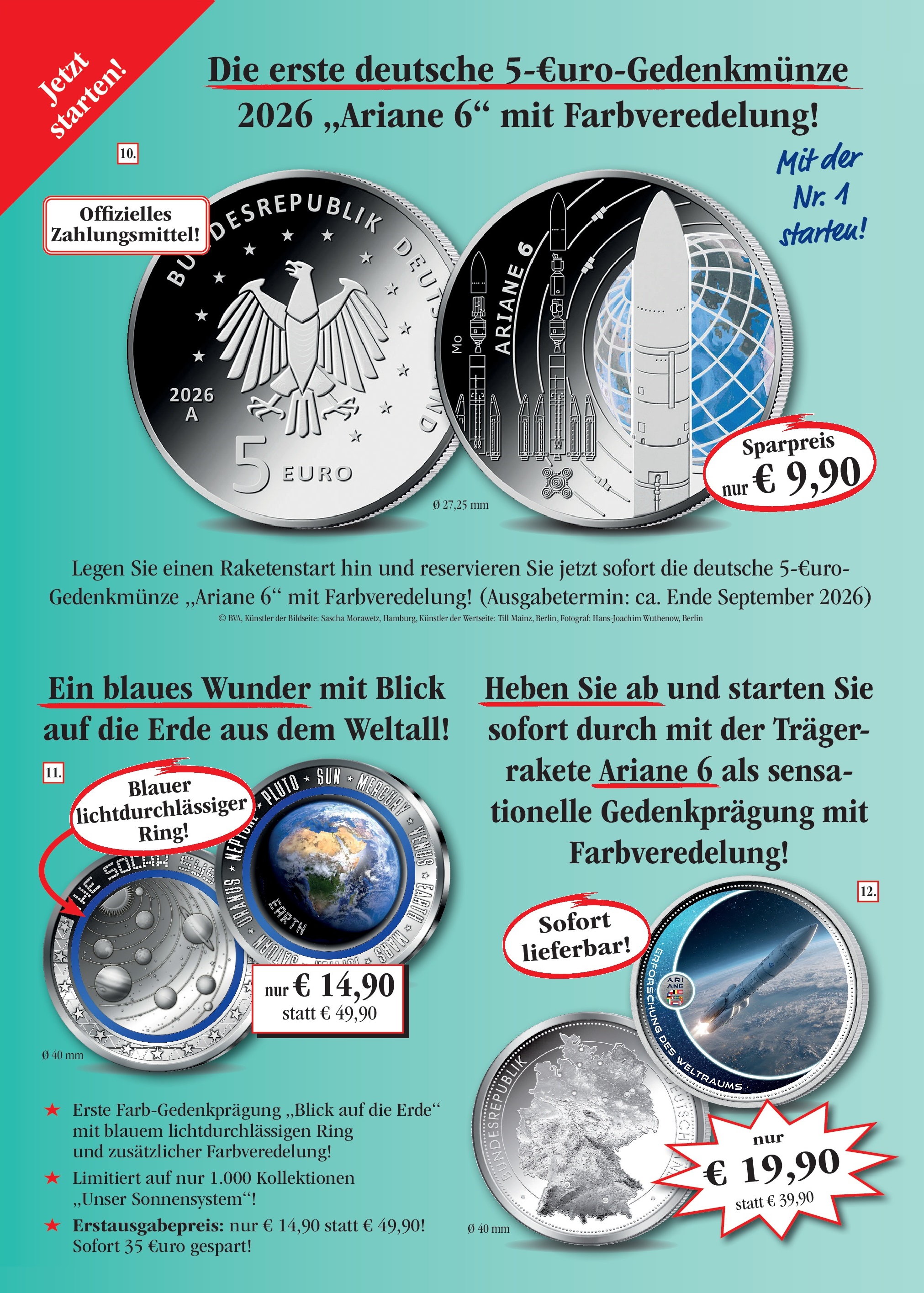 Ja, bitte liefern Sie mir folgende Startausgaben und monatlich eine weitere Ausgabe aus der jeweiligen Sammlung unverbindlich zur Ansicht. Ich habe bei jeder Lieferung ein 14-tägiges Rückgaberecht! (Lieferung zzgl. Versandkostenanteil – Porto, Verpackung, Versicherung – Ausverkauf vorbehalten)