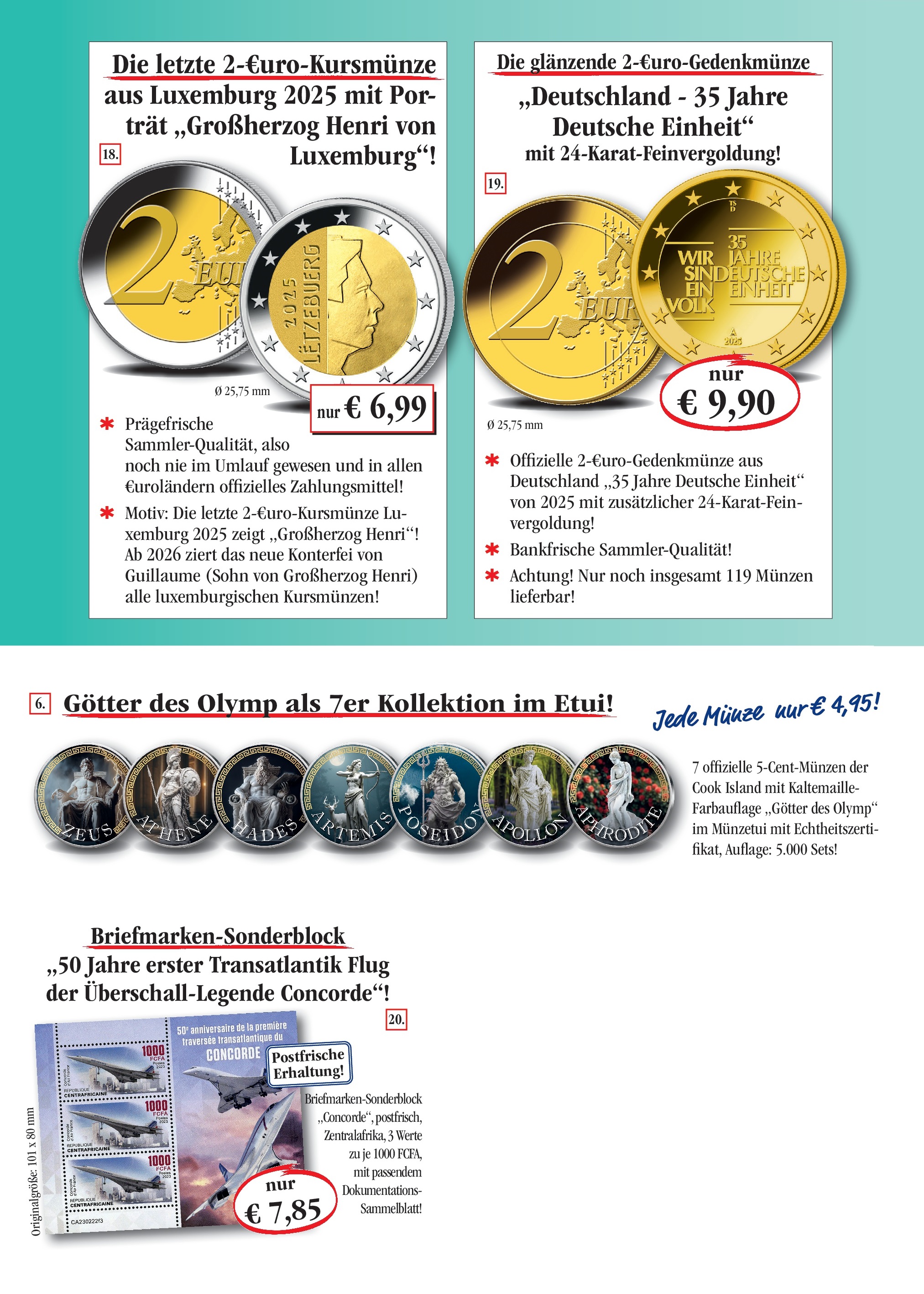 Herzlich Willkommen auf der Landing-Page zu Ihrem Mailing! Hier können Sie nun bequem und mit wenigen Klicks Ihre gewünschten Artikel bestellen! Wir bedanken uns recht herzlich und wünschen Ihnen viel Freude mit Ihrer Sammlung!